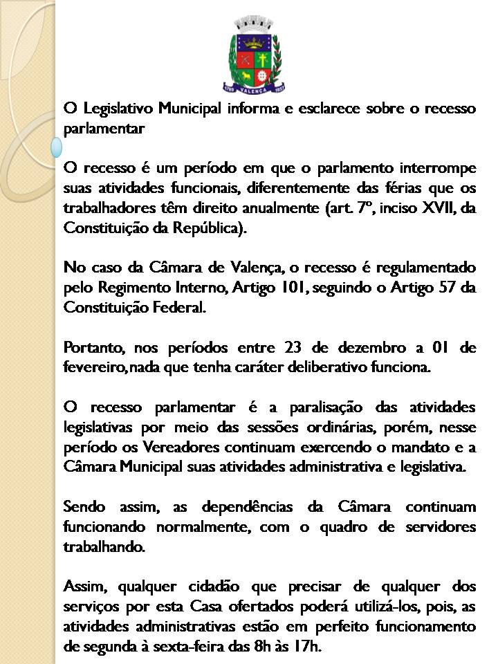 Legislativo informa e esclarece sobre o Recesso Parlamentar