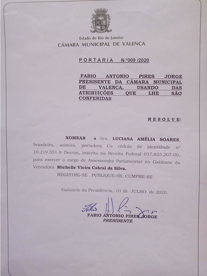 Portaria No. 009/2020 - Nomeação Assessor Parlamentaro Geral